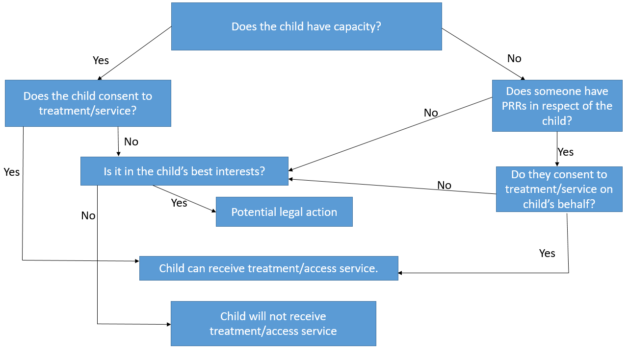 Information on how and when to seek advice from the NHS Central Legal Office re: child consent issues: